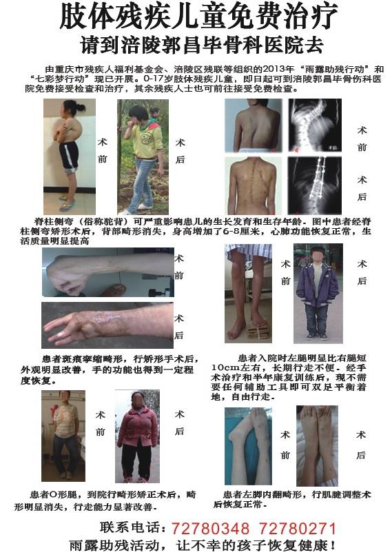 涪陵郭昌毕骨伤科医院免费矫治项目简介